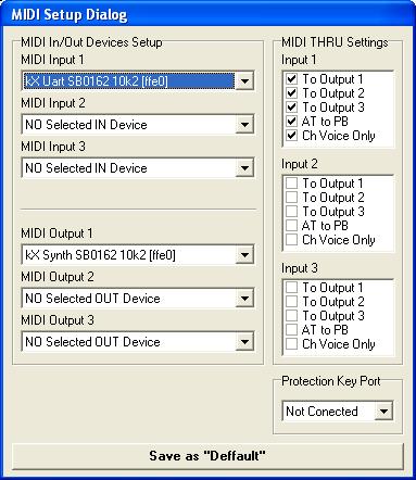 Важно!!! Програмата не е обвързана с конкретен модел звукова карта и може да служи като основен инструмент за MIDI Thru, независимо от използваната конфигурация.