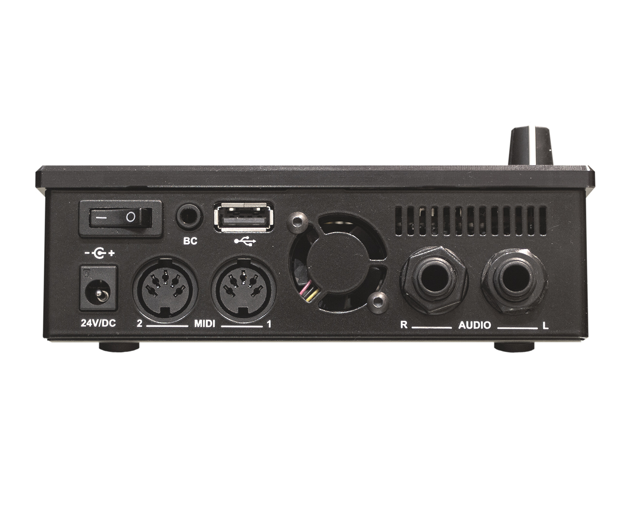 - Un conector MIDI este întotdeauna intrare MIDI, dar al doilea conector MIDI este configurabil ca a doua intrare MIDI, ieșire MIDI sau ieșire MIDI THRU.