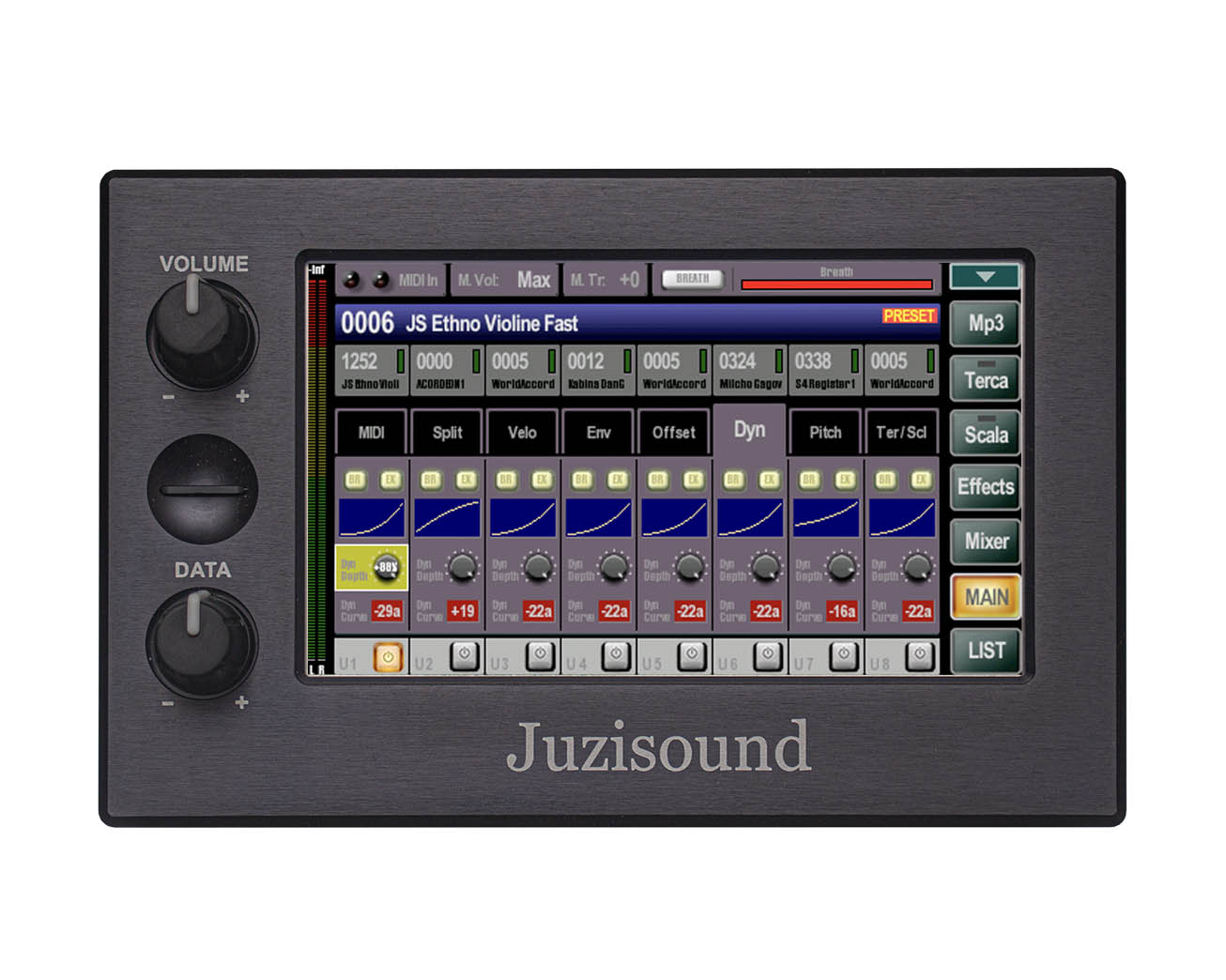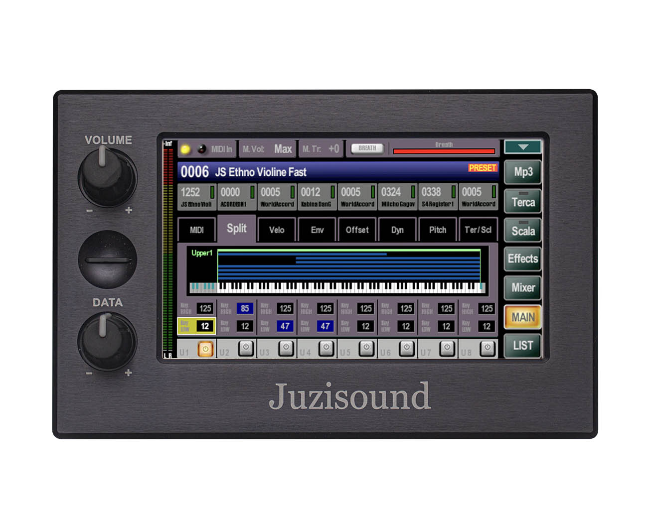 Când folosim controlerul MIDI sau sintetizatorul, avem nevoie doar de mai multe sunete suprapuse. În Juzisound, acesta este PRESET, egal cu COMBI în Korg.